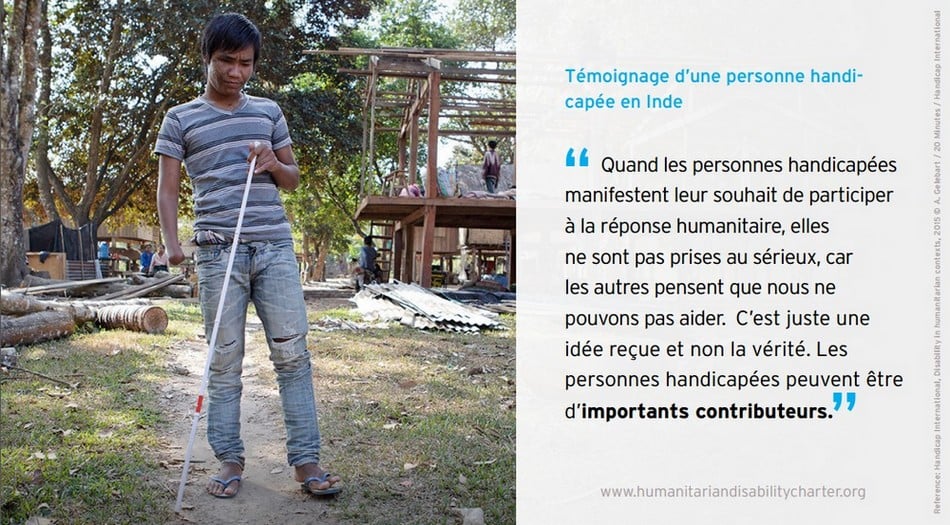 Aujourd’hui environ 150 États (dont la France), agences des Nations Unies, ONG internationales, organisations de personnes handicapées nationales, régionales et internationales, soutiennent formellement la Charte pour l'inclusion des personnes handicapées dans l'action humanitaire lancée le 23 mai 2016 par Handicap International et d’autres organisations de la société civile lors du Sommet humanitaire mondial d'Istanbul.