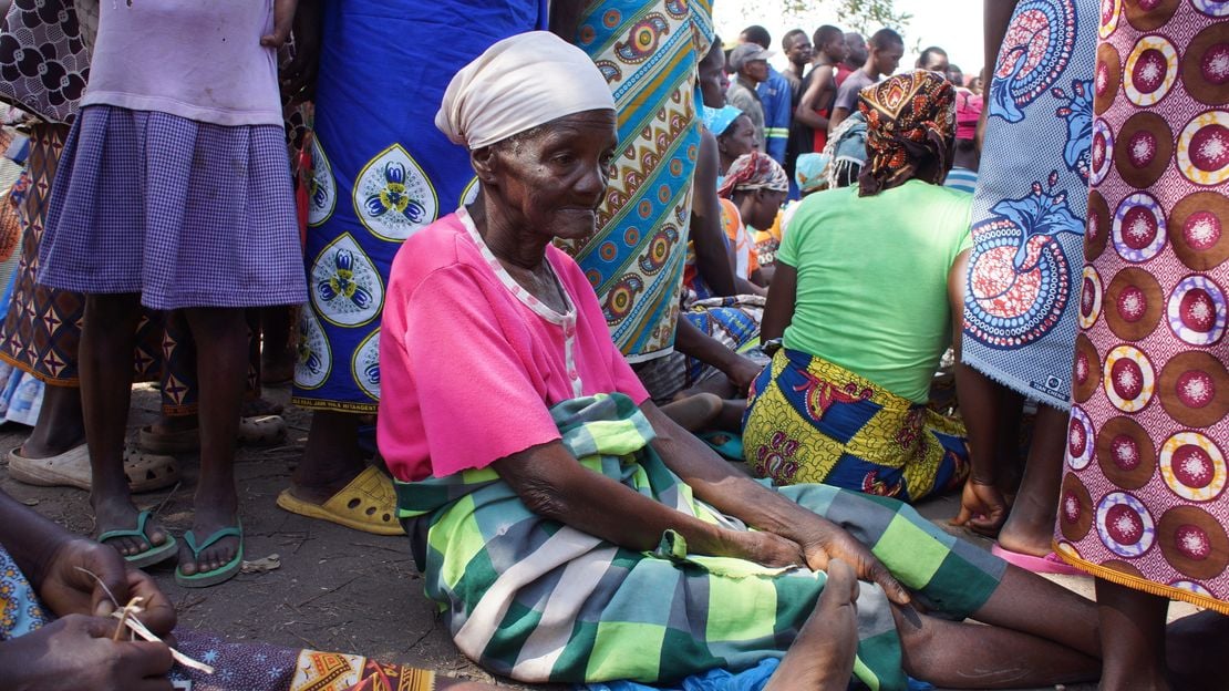 Une femme âgée assise dans la foule à Estaquinha © C.Briade / HI