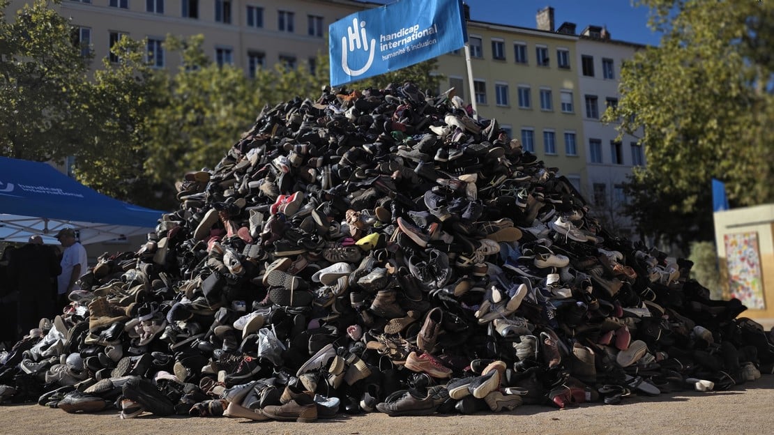 Événement de sensibilisation et de mobilisation citoyenne de Handicap International, les Pyramides de chaussures invitent les citoyens, petits et grands, à agir et à s’engager face aux conséquences de la montée des conflits armés et à la multiplication des catastrophes humanitaires dans le monde.