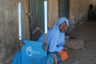 Alors qu’elle avait à peine 1 an, Roumanatou a fait une réaction violente à un traitement médical mal administré. Ses membres inférieurs sont depuis lors restés paralysés. Grâce au soutien d’un homme, leader handicapé de sa communauté, Roumanatou a été inscrite à l’école. La jeune fille progresse avec application et enthousiasme ; elle est aujourd’hui en classe de 4e. Handicap International lui a fourni un tricycle pour qu’elle puisse se déplacer en autonomie, ainsi que des fournitures scolaires.