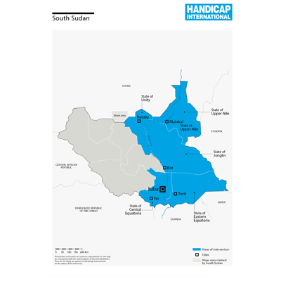 Dans ce jeune État, fondé en 2011, théâtre d’affrontements armés, Handicap International vient en aide aux Sud Soudanais qui fuient les combats, en particulier les plus vulnérables. L’organisation se concentre sur les soins de réadaptation et le soutien psychosocial. En parallèle, elle lutte contre les discriminations auxquelles font face les personnes handicapées.